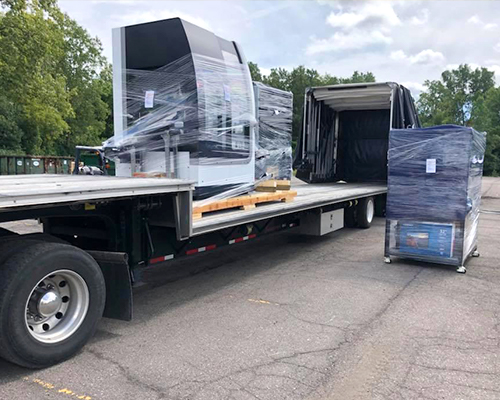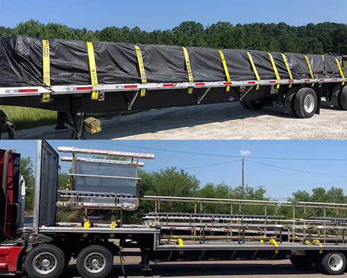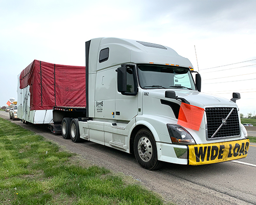 A double drop deck trailer carries the tallest loads. A double drop looks like a step deck or RGN in the front, but another short deck sits over its rear tires. Between the two short decks runs a long, very low main deck. Dropping below the trailer’s axles, this center deck is called the “well.” The double drop trailer’s deep well and low-profile wheels allow it to carry legal loads with cargo up to 11’6” high. Heavy haul trucking jobs use double drops, too. Most have a “flip axle” to handle the weight of large loads. The flip axle attaches to a trailer’s rear frame with hinge plates and pins. Thus, the axle folds down for heavy loads, and then back up onto the rear deck for storage.